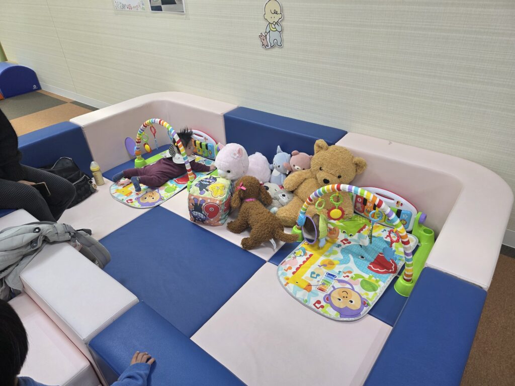 - 0〜2歳: 赤ちゃん向けのエリアは、3歳以上が入れないようになっており、授乳室やおむつ替えすぺースともつながっており、安心です。6か月の息子も安心してごろんできました(笑)